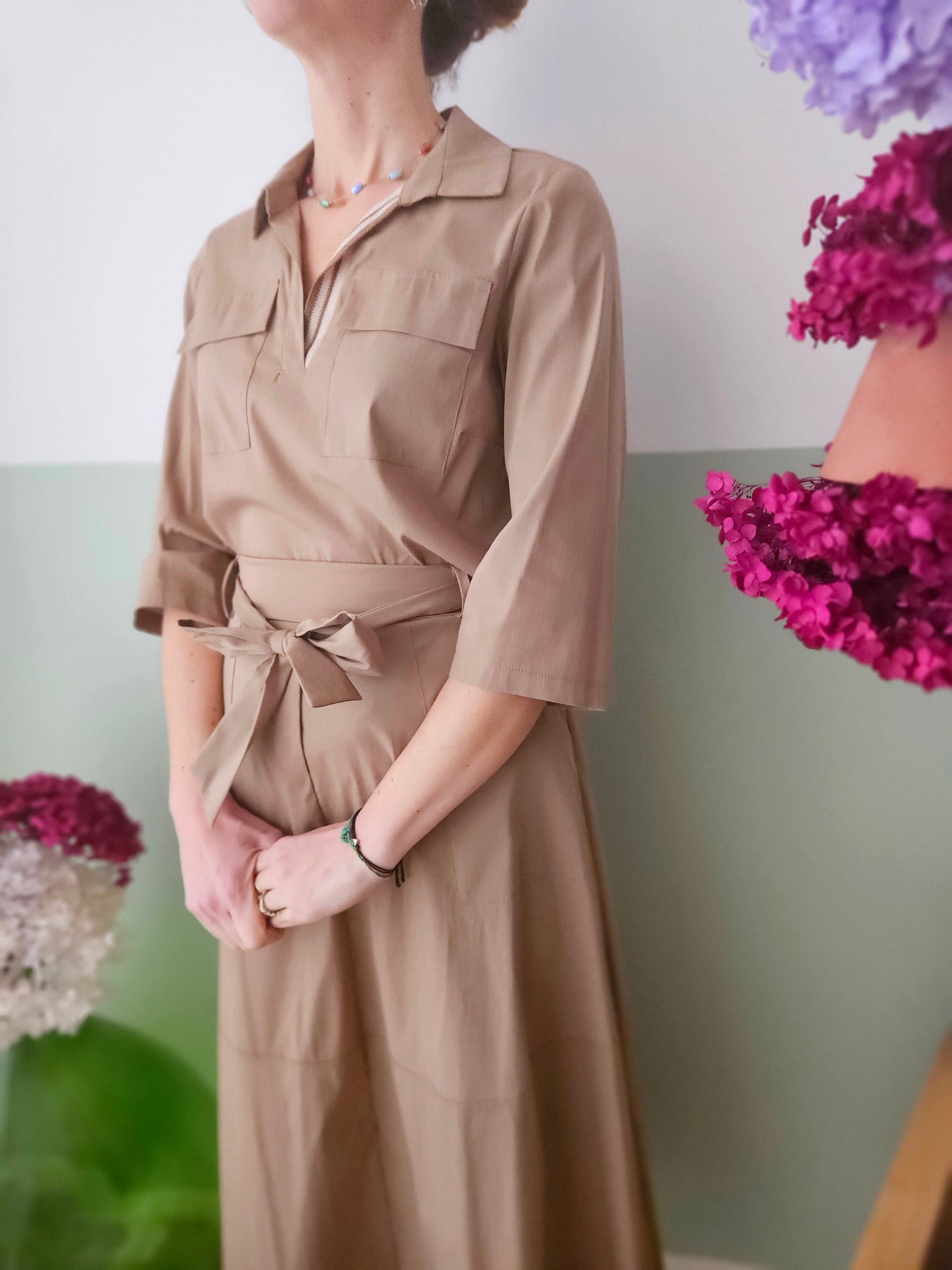 meravigliosa camicia in cotone, taschine sul davanti , svasata sul fondo