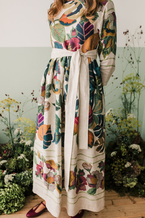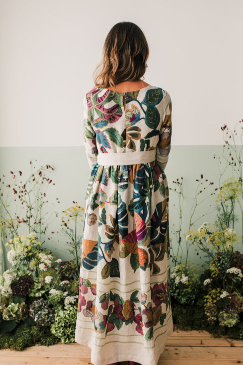 vestito poetico in lino italiano stampato