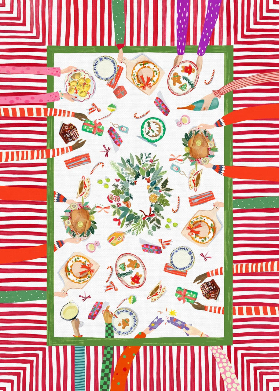 Colorata, ironica, vivace: la tovaglia natalizia HANDS ON XMAS è un'esplosione di gioia e di convivialità. Trasforma la tavola in un'opera d'arte dove ogni dettaglio racconta una storia di famiglia, di risate e di piatti condivisi. È una scenografia per i momenti più belli del Natale, dove ogni ospite si sente protagonista. Perfetta per chi ama ricevere con stile, ma senza prendersi troppo sul serio.